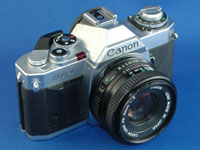 キヤノンの一眼レフカメラのうちで「Aシリーズ」とよばれるものは,AE機能を1つのセールスポイントにしていたように見受けられる。有名なものとしては,大ヒット商品になったAE-1やマルチモードAEを実現したA-1があげられる。AE-1ではオプション品としてワインダーが用意され,AE機構とあいまって「連写一眼」のセールスコピーもよく知られるようになった。AE-1のAE機構はシャッター速度優先AEであったが,ニコンやミノルタ,ペンタックスの一眼レフカメラは絞り優先AEを採用した。その結果,この当時のキヤノンの一眼レフカメラには「シャッター速度優先AE」というイメージが強く植え付けられたように思う。 だから,絞り優先AEのキヤノンAV-1は,ちょっと目立った存在だ。AV-1はAE専用であり,絞り優先AE専用ということになる。そのようなタイプの機種は,Nikon EM,FUJICA AX-1,Mamiya ZE,MINOLTA X-7,OLYMPUS OM10,PENTAX ME,YASHICA FR-IIなど多くのメーカーから発売されているが,いずれもラインアップの最下位に位置づけられ,購入しやすく扱いやすい製品としてアピールされていた。 Canon AV-1の標準レンズとしては,廉価な50mm F2レンズが用意された。この50mm F2レンズは,従来のブリーチロック式から,レンズを回すだけで脱着ができるしくみに改められたものである。このようなレンズは,従来のブリーチロック式の「FDレンズ」に対して,「ニューFDレンズ」とよばれ,他のレンズもモデルチェンジされていった。