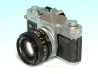 キヤノンの一眼レフカメラが開放測光を採用するのは比較的遅く,1971年のF-1が最初である。このときレンズ群も,それまでのFLレンズ群から,開放測光に対応したFDレンズ群に一新された。FTbは,F-1の下位モデルとして同年に発売された。なお,ここで紹介するボディは,1973年に発売されたマイナーチェンジモデル(通称 FTB-n)である。大きな変更点は,設定したシャッター速度をファインダー内確認できるようになったところにある。