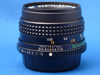 マミヤZE用(ミラクルマウント)の標準レンズである。そのうちのマミヤセコールEFレンズは,Mamiya ZE-Xに装着した場合,ボディに距離の情報を伝達する機能をもつ。距離情報は,専用のフラッシュMAMIYALITE MZ36RあるいはMZ18Rを使用するときに利用され,距離に応じて自動的に発光量と絞りが調整されるようになる(MZオート)。