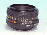 最小絞りストッパーのついた,New MDの標準レンズ。50mm F2というレンズは輸出専用仕様であり,「日本カメラショー」総合カタログには掲載されなかった。