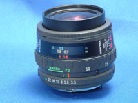 ペンタックスKAFマウント用の標準ズームレンズである。モーターを内蔵した専用AFレンズを使用する「ペンタックスME-F」(1981年)ではじめてオートフォーカス一眼レフカメラを商品化したペンタックスだが,「ミノルタα-7000」(1985年)のようなボディに内蔵したモーターでレンズのピントリングを操作するタイプのオートフォーカス一眼レフカメラを発売したのは,1986年の「ペンタックスSFX」からとなる。このレンズは,「ペンタックスSFX」の時代のもので,KAFマウントとして最初に発売されたもののうちの1つとなる。