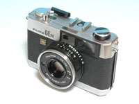 裏蓋についた,フィルム確認用の窓・・・・今ではあたり前のものだが,35mmフルサイズカメラでこれが最初につけられたのは,フジカGEと,その上位機種にあたるGERである。GERは,GEと異なり,セルフタイマーと二重像合致式連動距離計を内蔵している。このカメラには,失敗のない撮影を目指して,さまざまなインジケータが搭載されている。低輝度時には,軍艦部およびファインダー内にランプが点灯して警告してくれる。フィルムカウンタの横には,フィルム巻き上げインジケータがあり(巻き上げていないとき緑,巻き上げると赤),背面にはフィルムがきちんと給送されていることを示すインジケータがある。小型ながら,なかなか気のきいたカメラと言える。