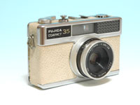 1967年から1970年にかけて発売されたシリーズの1つである。それまでのEEカメラより,大幅にコンパクトになった。露出計の連動範囲は狭いが,プログラムAEシャッターが搭載され,日中の撮影は容易になっている。ただし,フィルム感度の設定できる範囲がISO25〜200までであり,最近主流であるISO400のフィルムには対応していないことに,気をつけなければならない。 ボディのスタイルは,シンプルで美しい。貼り革の色のバリエーションには,ここに取り上げたアイボリーのほかに,ブラック(これがもっとも一般的),ブルーがあったようだ。 コンパクト化の流れは,この後の「G」シリーズでさらに追究される。