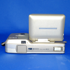 はじめのころのディジタルカメラは,画質を語ることがナンセンスなレベルだった。そのためか,パーソナルコンピュータとの連携を主張したり,フィルムカメラでは考えられないようなデザインのものが提案されきた。ディジタルカメラは「フィルム」という物体の形状に縛られないため,ディジタルカメラならではのさまざまな形態のものが可能だったのである。フィルムカメラでは考えられないくらい薄いボディのものや,レンズ部分が回転するもの,あるいはレンズが中央付近から大きくずれた位置にあるものなど,さまざまな工夫の結果である。